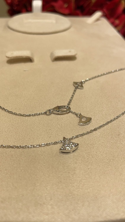 Home > Bulgari small fan full diamond white gold necklace-3896