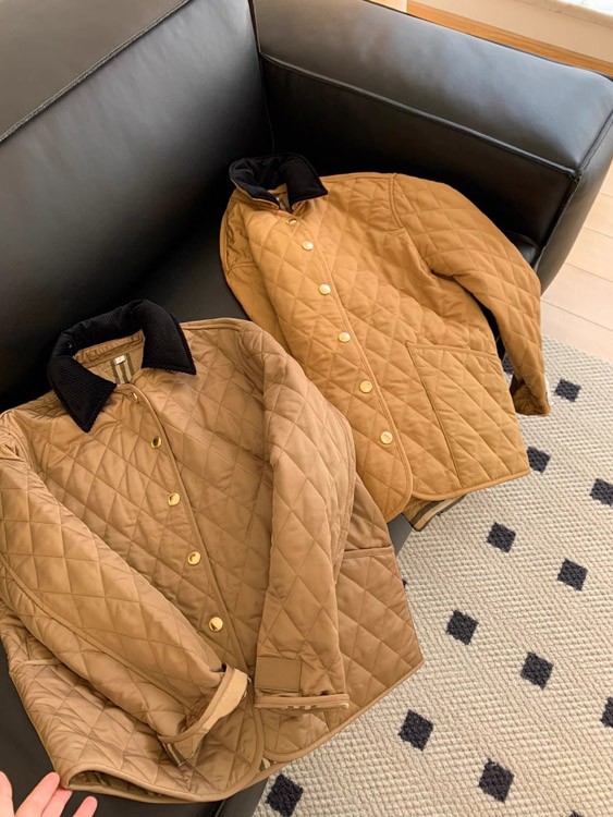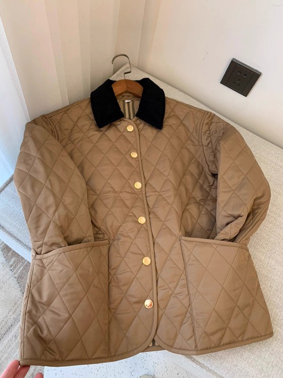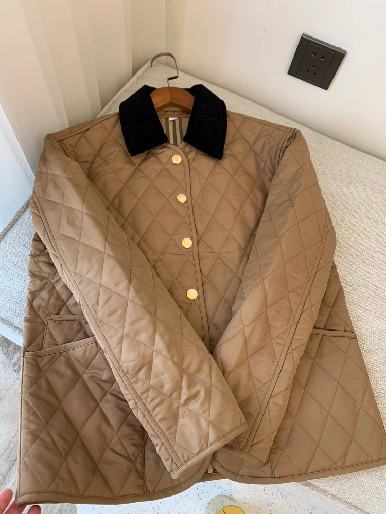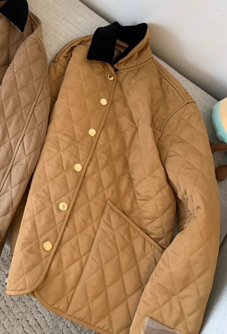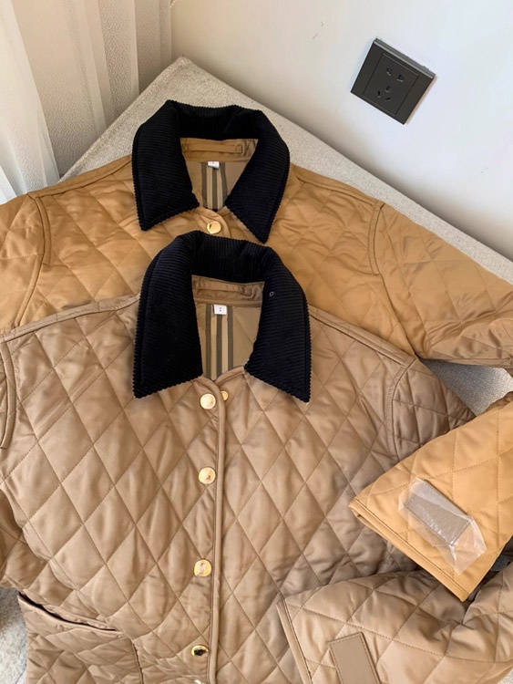 Home > Burberry classic corduroy collar diamond quilted down jacket in golden cotton-5300