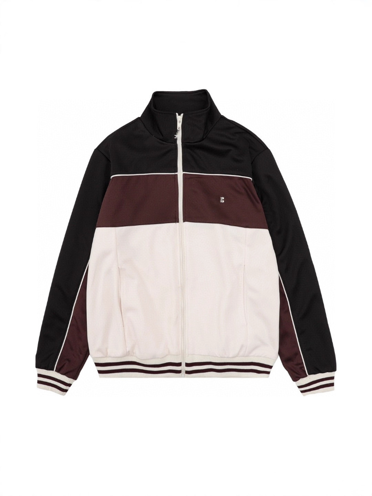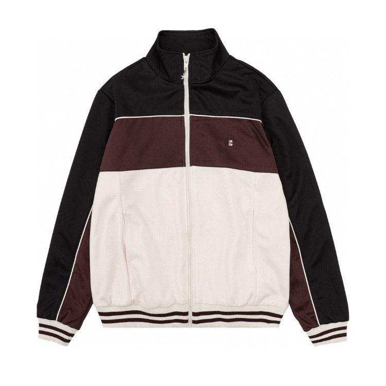 Celine embroidered chocolate-colored patchwork color-block casual jacket-5482