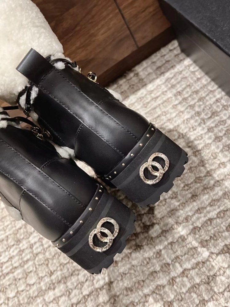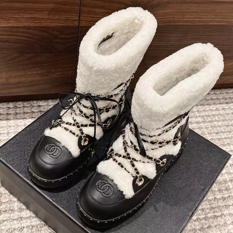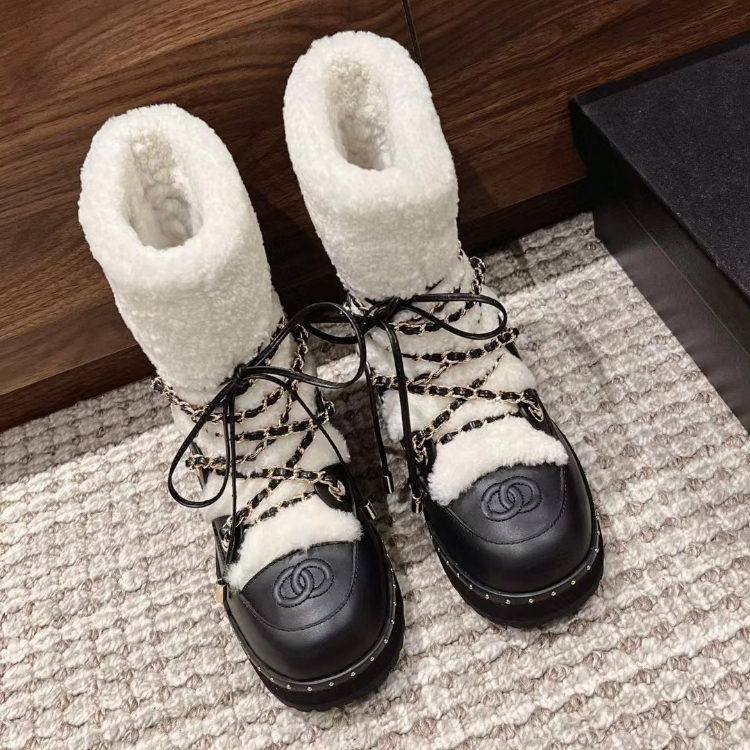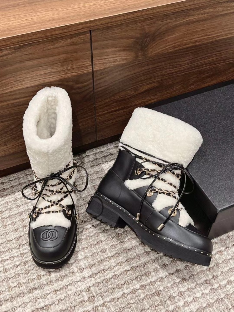 Chanel shearling-lined mid-calf snow boots with laces-5773
