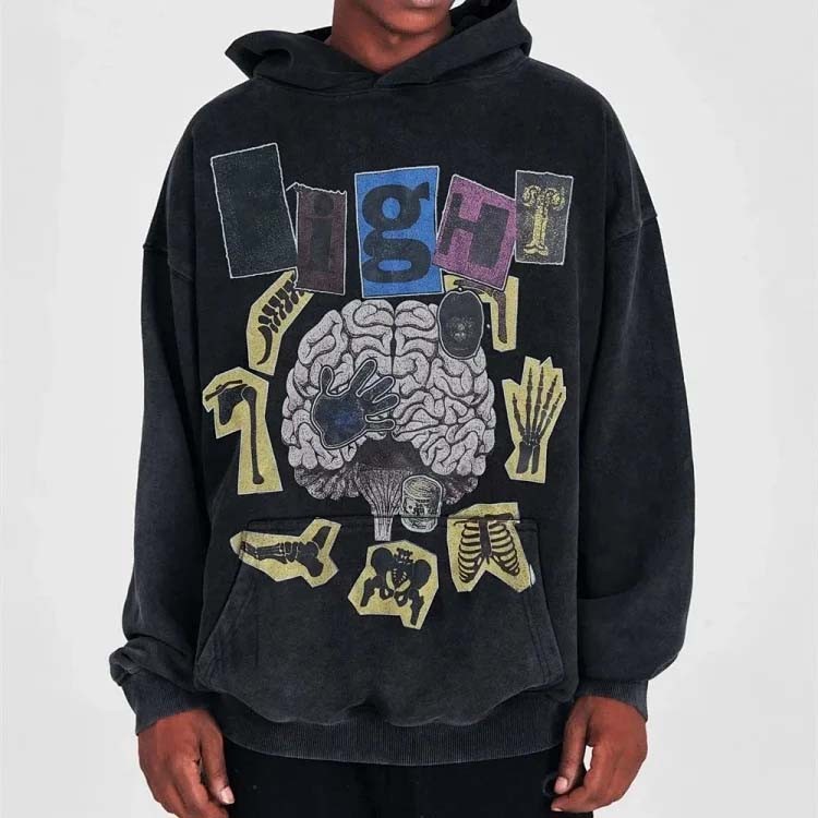 Gallery Dept American retro distressed brain print loose hooded sweatshirt (28 styles)-2503