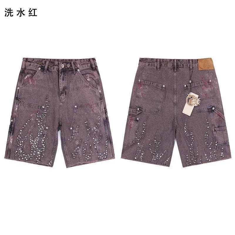 Hell Star Hot Diamond Denim Shorts for Men and Women-1643