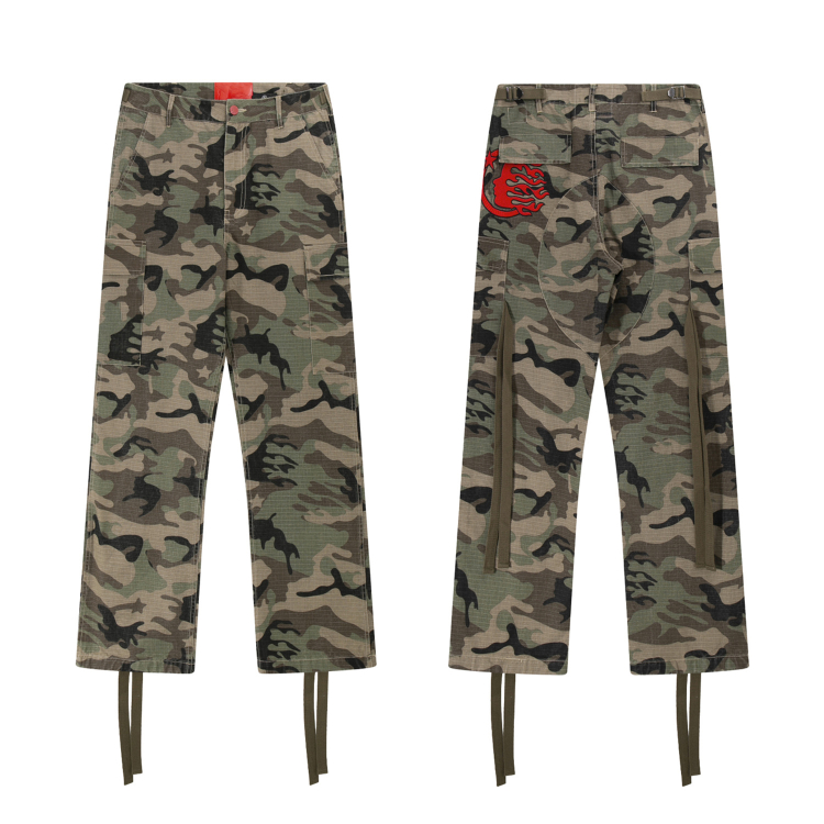 Home > Hellstar new embroidered ribbon straight-leg camouflage work pants-5280