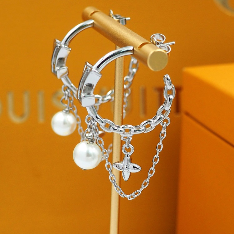 Louis Vuitton LV flower and letter pearl earrings-4060