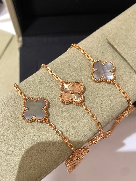 Home > Van Cleef & Arpels rose gold gray mother-of-pearl laser five-flower bracelet-3688